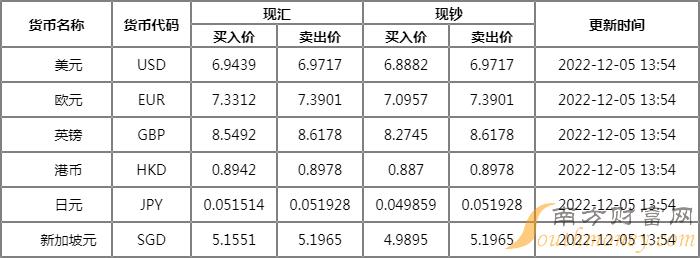 2022年渤海银行外汇牌价查询表 12月5日渤海银行人民币汇率是多少?下面同南方财富网侃财君来了解一下。
