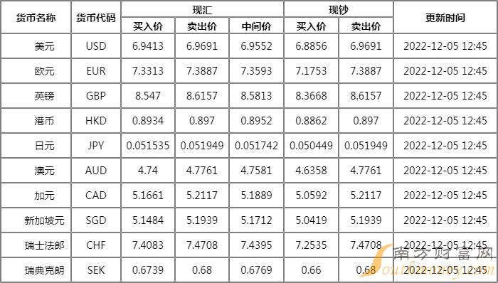 2022年华夏银行外汇牌价查询表 12月5日华夏银行人民币汇率是多少?下面同南方财富网鲸多君来了解一下。