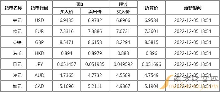 2022年邮储银行外汇牌价查询表 12月5日邮储银行人民币汇率是多少?下面同南方财富网小宋来了解一下。