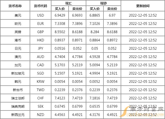 2022年兴业银行外汇牌价表 12月5日兴业银行人民币汇率是多少?下面同南方财富网袋袋君来了解一下。