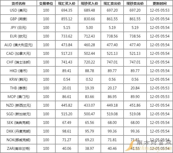 2022建设银行外汇牌价表 12月5日建设银行人民币汇率是多少?下面同南方财富网大眼君来了解一下。