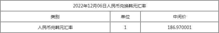 2022年12月6日银行间外汇市场人民币汇率中间价为:1美元对人民币6.9746元,1欧元对人民币7.3251元,100日元对人民币5.1067元,1港元对人民币0.89775元,1英镑对人民币8.5069元,1澳大利亚元对人民币4.6769元,1新西兰元对人民币4.4121元,1新加坡元对人民币5.1434元,1瑞士法郎对人民币7.4018元,1加拿大元对人民币5.1316元,人民币1元对0.62713马来西亚林吉特,人民币1元对8.7617俄罗斯卢布,人民币1元对2.5012南非兰特,人民币1元对186.97韩元,人民币1元对0.52660阿联酋迪拉姆,人民币1元对0.53889沙特里亚尔,人民币1元对56.4287匈牙利福林,人民币1元对0.64327波兰兹罗提,人民币1元对1.0159丹麦克朗,人民币1元对1.4905瑞典克朗,人民币1元对1.4255挪威克朗,人民币1元对2.67179土耳其里拉,人民币1元对2.8298墨西哥比索,人民币1元对5.0196泰铢。