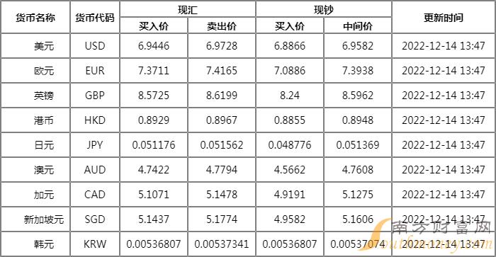 12月14日,人民币兑美元中间价报6.9535,调升211个基点。前一交易日中间价报6.9746,人民币16:30收盘价报6.9811,23:30夜盘收报6.9500。
