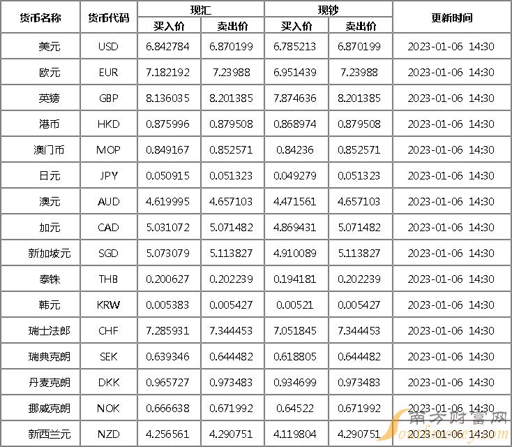 光大银行外汇牌价表1月6日 光大银行人民币美元汇率多少?下面同南方财富网焦点君来看看。