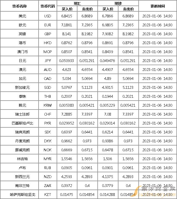 工商银行外汇牌价表1月6日 工商银行人民币美元汇率多少?下面同南方财富网老张来看看。