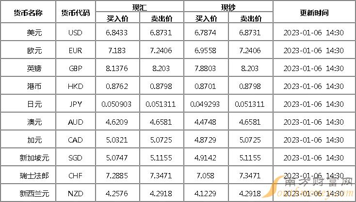 招商银行外汇牌价表1月6日 招商银行人民币美元汇率多少?下面同南方财富网猫宁君来看看。