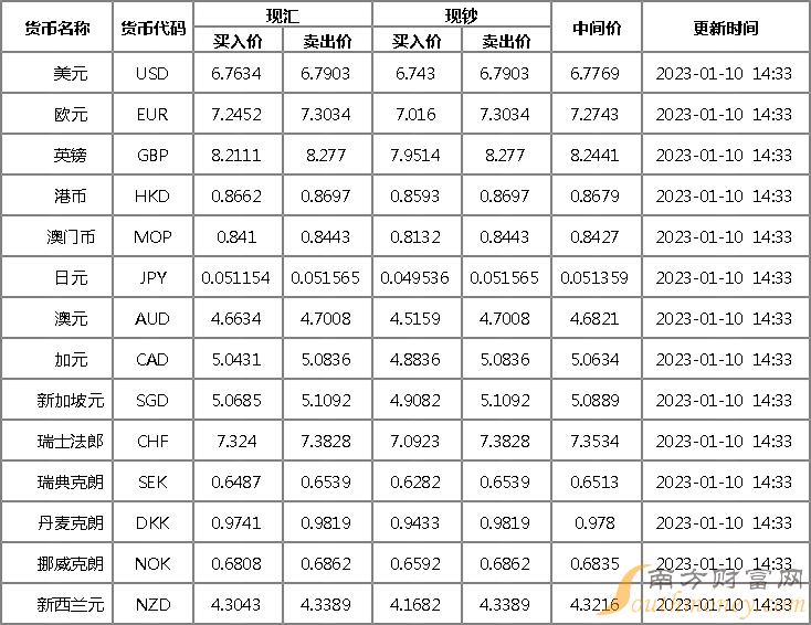 xm外汇:广发银行外汇牌价一览表 1月10日广发银行美元汇率是多少?