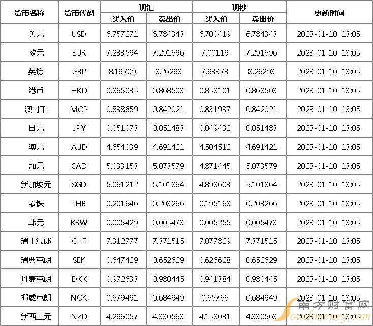 光大银行外汇牌价一览表 1月10日光大银行美元汇率是多少?下面同南方财富网蝴蝶君来看看。