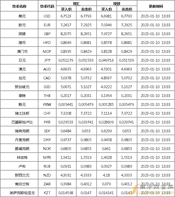 xm外汇:工商银行外汇牌价一览表 1月10日工商银行人民币对美元汇率多少?