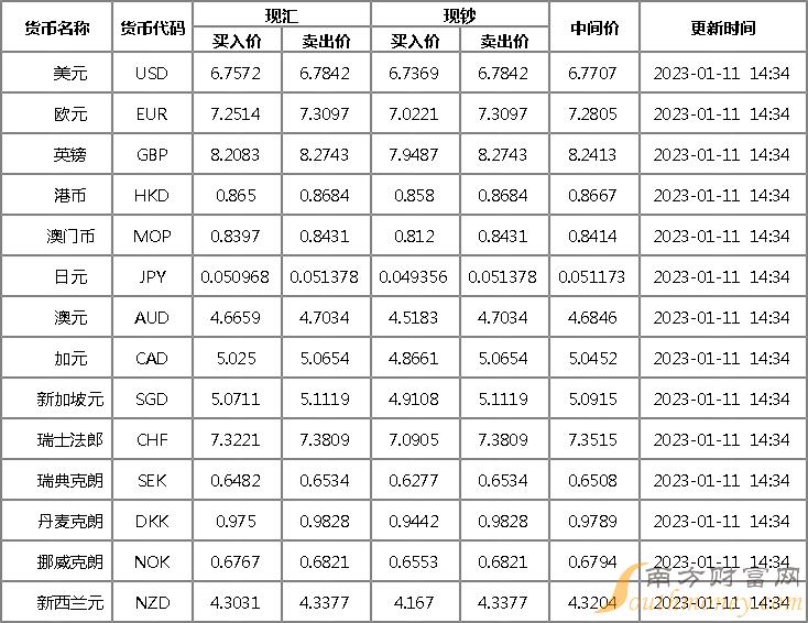 广发银行外汇牌价表1月11日 广发银行人民币对美元汇率多少?下面同南方财富网汇财君来看看。