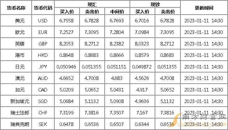 华夏银行外汇牌价表1月11日 华夏银行人民币对美元汇率多少?下面同南方财富网侃财君来看看。