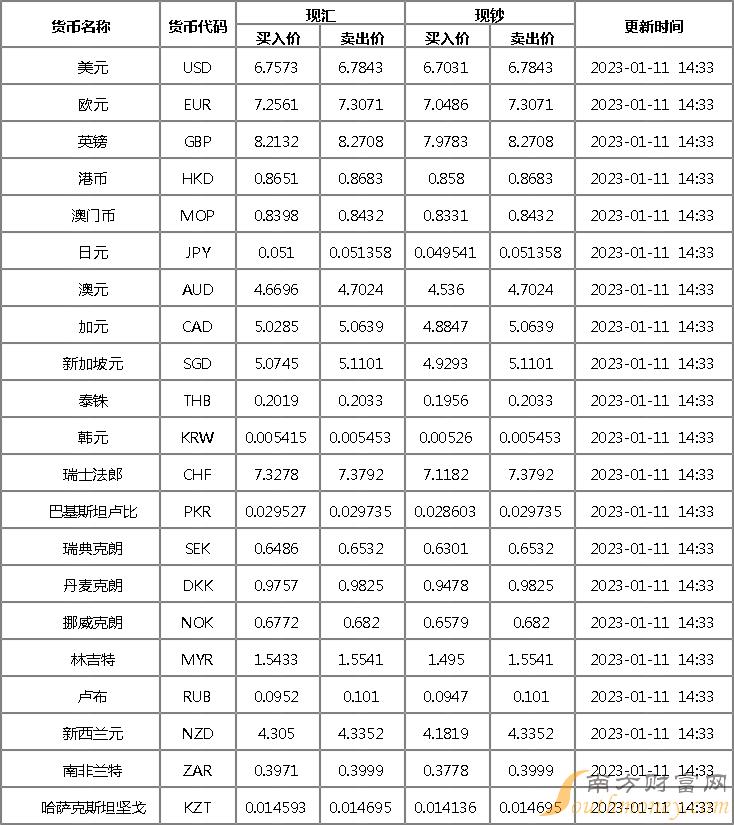 工商银行外汇牌价表1月11日 工商银行人民币对美元汇率多少?下面同南方财富网火车君来看看。