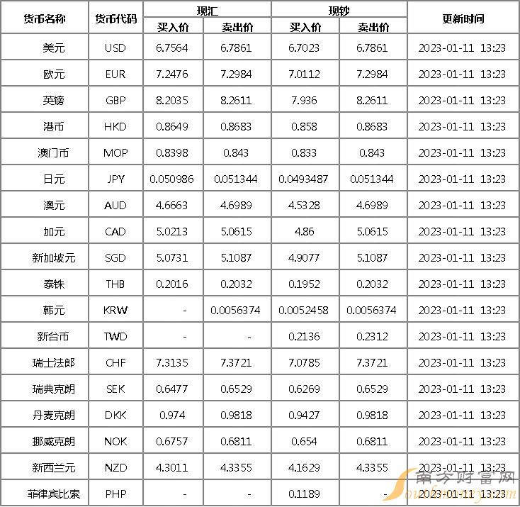 交通银行外汇牌价表1月11日 交通银行人民币对美元汇率多少?下面同南方财富网微聊君来看看。
