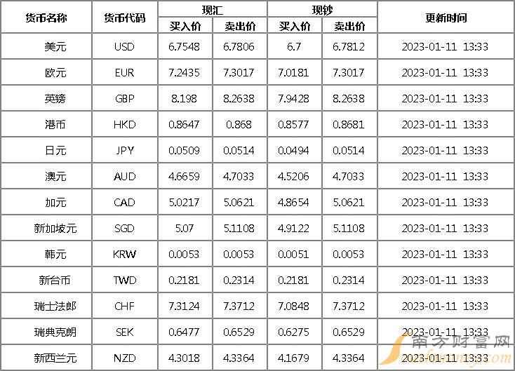 兴业银行外汇牌价表1月11日 兴业银行人民币对美元汇率多少?下面同南方财富网吾悟君来看看。