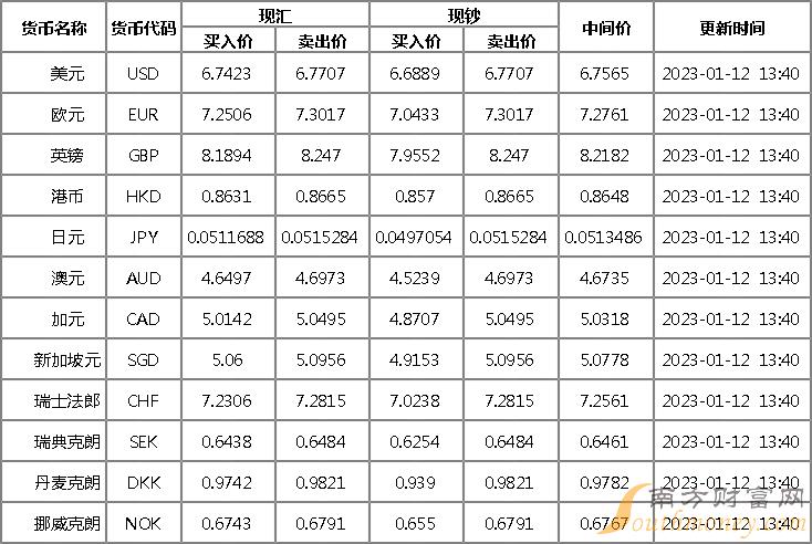 xm外汇:浦发银行外汇牌价表1月12日浦发银行人民币对美元汇率多少?