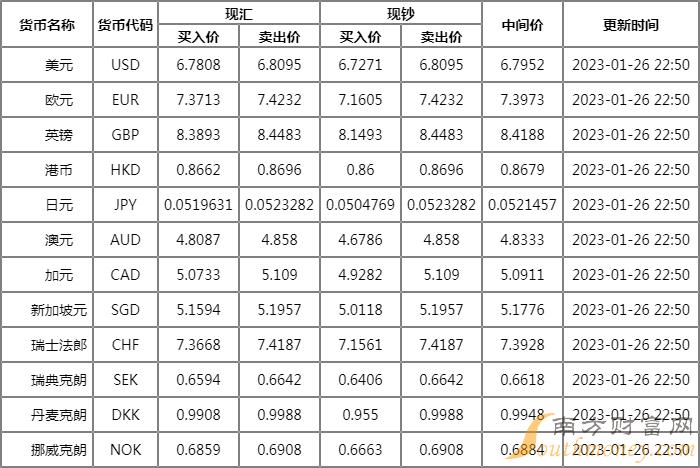 2023年1月29日浦发银行外汇牌价一览 人民币对美元汇率多少? 南方财富网胡V为您提供各银行人民币汇率最新价格详情。