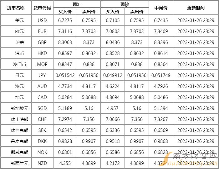 2023年1月29日广发银行外汇牌价一览 人民币对美元汇率多少? 南方财富网火车君为您提供各银行人民币汇率最新价格详情。