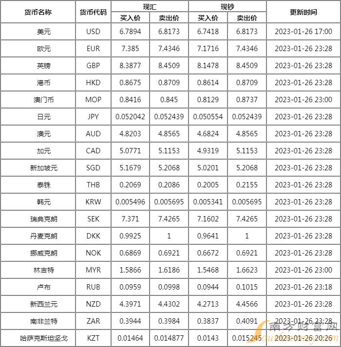 2023年1月29日建设银行外汇牌价一览 人民币对美元汇率多少? 南方财富网袋袋君为您提供各银行人民币汇率最新价格详情。