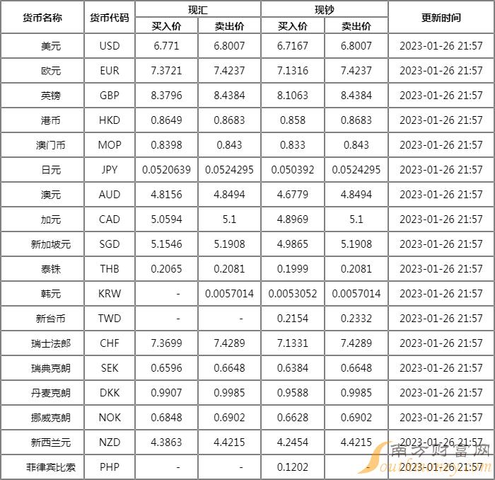 2023年1月29日交通银行外汇牌价一览 人民币对美元汇率多少? 南方财富网笔记君为您提供各银行人民币汇率最新价格详情。