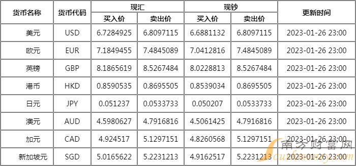 2023年1月29日,货币兑换: