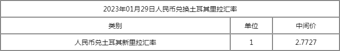 2023年1月29日,货币兑换:1人民币等于 2.5348土耳其里拉。
