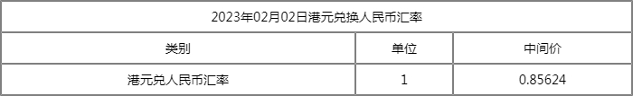 2023年2月2日银行间外汇市场人民币汇率中间价为:1美元对人民币6.7130元,1欧元对人民币7.3935元,100日元对人民币5.2211元,1港元对人民币0.85624元,1英镑对人民币8.3205元,1澳大利亚元对人民币4.7984元,1新西兰元对人民币4.3738元,1新加坡元对人民币5.1430元,1瑞士法郎对人民币7.4048元,1加拿大元对人民币5.0600元,人民币1元对0.63400马来西亚林吉特,人民币1元对10.4356俄罗斯卢布,人民币1元对2.5372南非兰特,人民币1元对182.07韩元,人民币1元对0.54713阿联酋迪拉姆,人民币1元对0.55899沙特里亚尔,人民币1元对52.7452匈牙利福林,人民币1元对0.63624波兰兹罗提,人民币1元对1.0062丹麦克朗,人民币1元对1.5357瑞典克朗,人民币1元对1.4722挪威克朗,人民币1元对2.80205土耳其里拉,人民币1元对2.7707墨西哥比索,人民币1元对4.8814泰铢。