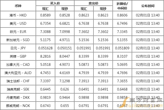 【浦发银行外汇牌价】浦发银行汇率实时查询(2023年2月1日)。下面同南方财富网小语了解一下。