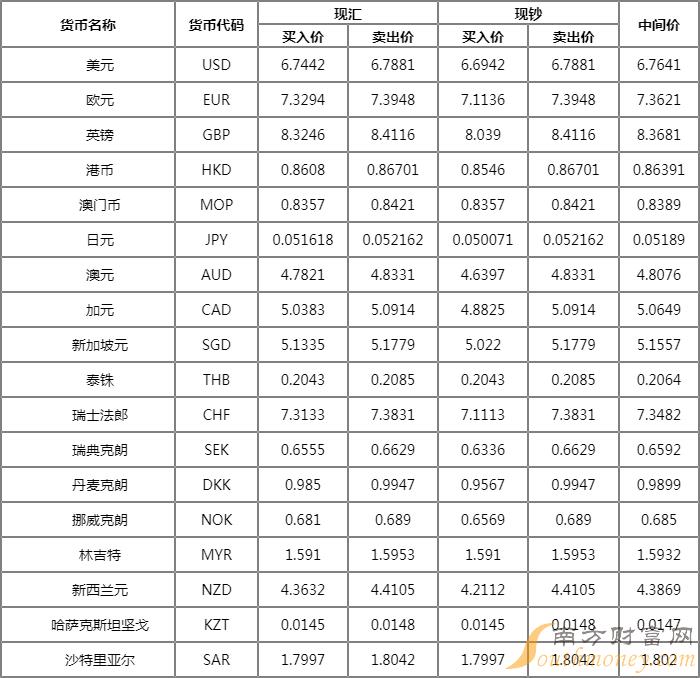 2023年2月1日银行间外汇市场人民币汇率中间价为:1美元对人民币6.7492元,1欧元对人民币7.3318元,100日元对人民币5.1895元,1港元对人民币0.86084元,1英镑对人民币8.3094元,1澳大利亚元对人民币4.7593元,1新西兰元对人民币4.3423元,1新加坡元对人民币5.1372元,1瑞士法郎对人民币7.3667元,1加拿大元对人民币5.0729元,人民币1元对0.63233马来西亚林吉特,人民币1元对10.4401俄罗斯卢布,人民币1元对2.5793南非兰特,人民币1元对182.49韩元,人民币1元对0.54414阿联酋迪拉姆,人民币1元对0.55602沙特里亚尔,人民币1元对53.3455匈牙利福林,人民币1元对0.64217波兰兹罗提,人民币1元对1.0146丹麦克朗,人民币1元对1.5474瑞典克朗,人民币1元对1.4790挪威克朗,人民币1元对2.78724土耳其里拉,人民币1元对2.7921墨西哥比索,人民币1元对4.8695泰铢。
