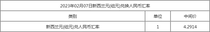 1新西兰元 = 4.2914人民币