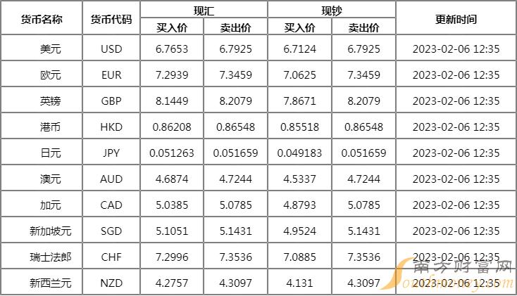 xm外汇:浙商银行外汇牌价查询(2023年2月6日)浙商银行美元汇率多少?