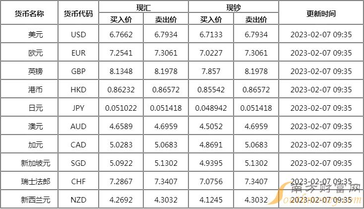 浙商银行外汇牌价2023年2月7日 浙商银行美金汇率是多少?人民币汇率走势如何?下面同南方财富网小希来了解一下。