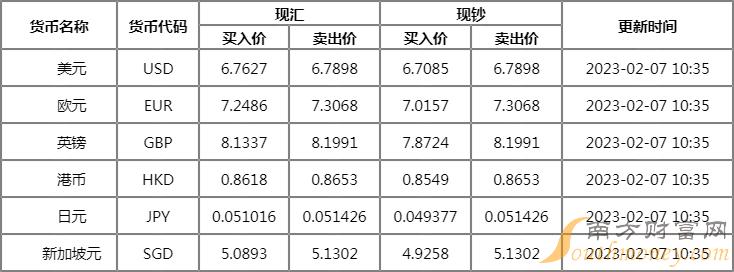 2023年2月7日渤海银行外汇牌价 渤海银行美金汇率是多少?人民币汇率走势如何?下面同南方财富网小狮子来了解一下。