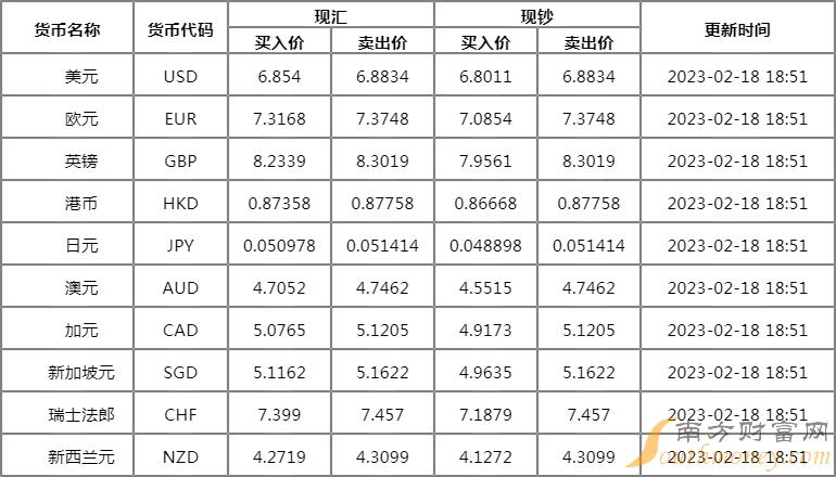 2023年2月17日银行间外汇市场人民币汇率中间价为:1美元对人民币6.8659元,1欧元对人民币7.3193元,100日元对人民币5.1189元,1港元对人民币0.87474元,1英镑对人民币8.2199元,1澳大利亚元对人民币4.7126元,1新西兰元对人民币4.2881元,1新加坡元对人民币5.1342元,1瑞士法郎对人民币7.4068元,1加拿大元对人民币5.0974元,人民币1元对0.64262马来西亚林吉特,人民币1元对10.8944俄罗斯卢布,人民币1元对2.6443南非兰特,人民币1元对187.82韩元,人民币1元对0.53503阿联酋迪拉姆,人民币1元对0.54635沙特里亚尔,人民币1元对52.4300匈牙利福林,人民币1元对0.65170波兰兹罗提,人民币1元对1.0175丹麦克朗,人民币1元对1.5231瑞典克朗,人民币1元对1.4952挪威克朗,人民币1元对2.74684土耳其里拉,人民币1元对2.7015墨西哥比索,人民币1元对5.0096泰铢。
