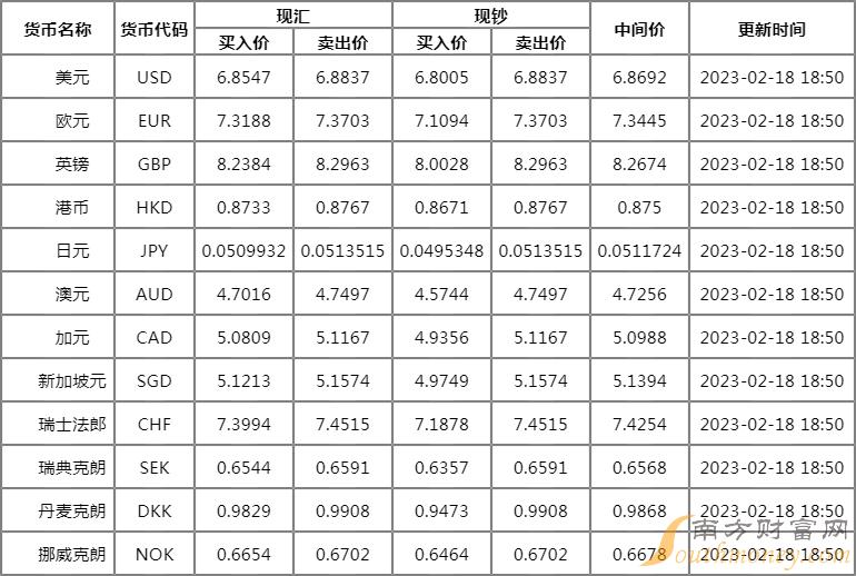浦发银行外汇牌价表2月18日 浦发银行外汇汇率多少?人民币汇率如何?下面同南方财富网默默来看看。