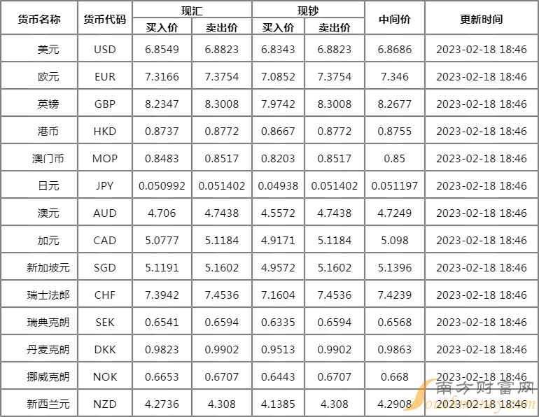 xm外汇:广发银行外汇牌价查询表2月18日 人民币对 美元汇率多少?