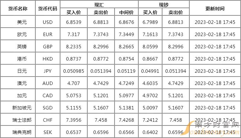 xm外汇:华夏银行外汇牌价表2月18日 今日人民币对美元汇率多少?