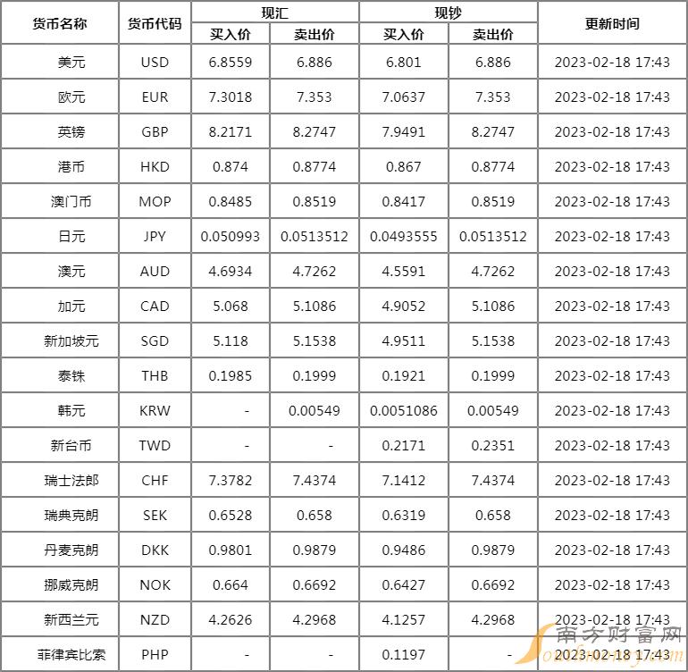 交通银行外汇牌价表2月18日 交通银行外汇汇率多少?人民币汇率如何?下面同南方财富网侃财君来看看。