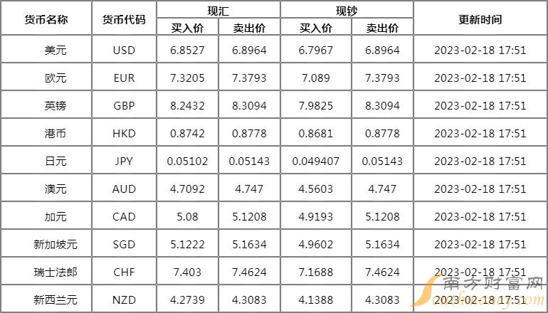 招商银行外汇牌价表2月18日 招商银行外汇汇率多少?人民币汇率如何?下面同南方财富网小南来看看。