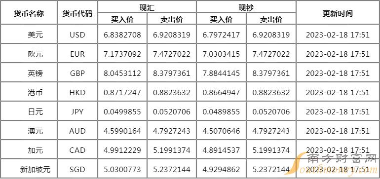 2023年2月17日银行间外汇市场人民币汇率中间价为:1美元对人民币6.8659元,1欧元对人民币7.3193元,100日元对人民币5.1189元,1港元对人民币0.87474元,1英镑对人民币8.2199元,1澳大利亚元对人民币4.7126元,1新西兰元对人民币4.2881元,1新加坡元对人民币5.1342元,1瑞士法郎对人民币7.4068元,1加拿大元对人民币5.0974元,人民币1元对0.64262马来西亚林吉特,人民币1元对10.8944俄罗斯卢布,人民币1元对2.6443南非兰特,人民币1元对187.82韩元,人民币1元对0.53503阿联酋迪拉姆,人民币1元对0.54635沙特里亚尔,人民币1元对52.4300匈牙利福林,人民币1元对0.65170波兰兹罗提,人民币1元对1.0175丹麦克朗,人民币1元对1.5231瑞典克朗,人民币1元对1.4952挪威克朗,人民币1元对2.74684土耳其里拉,人民币1元对2.7015墨西哥比索,人民币1元对5.0096泰铢。