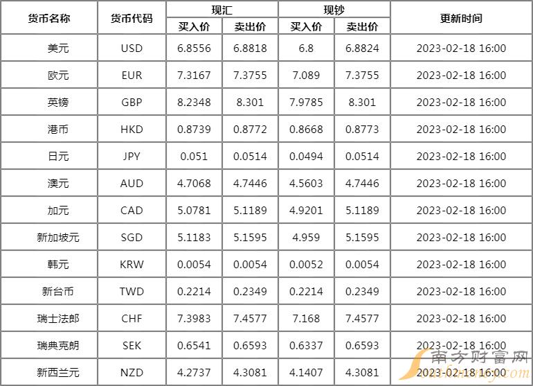 兴业银行外汇牌价表2月18日 兴业银行外汇汇率多少?人民币汇率如何?下面同南方财富网小蔡来看看。
