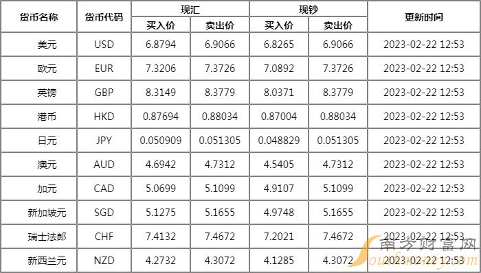 2月22日浙商银行外汇牌价一览 浙商银行人民币美元汇率是多少?下面同南方财富网小股来看看。
