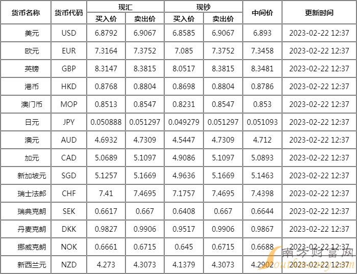 2月22日广发银行外汇牌价一览 广发银行人民币美元汇率是多少?下面同南方财富网默默来看看。