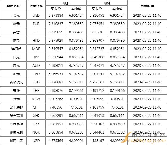 2月22日光大银行外汇牌价一览 光大银行人民币美元汇率是多少?下面同南方财富网笔记君来看看。