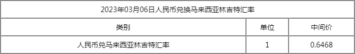 1 人民币 ≈ 0.6468 马来西亚林吉特