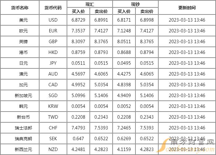 兴业银行外汇牌价2023年3月13日兴业银行人民币汇率多少,下面南方财富网圈圈整理的,仅供参考。