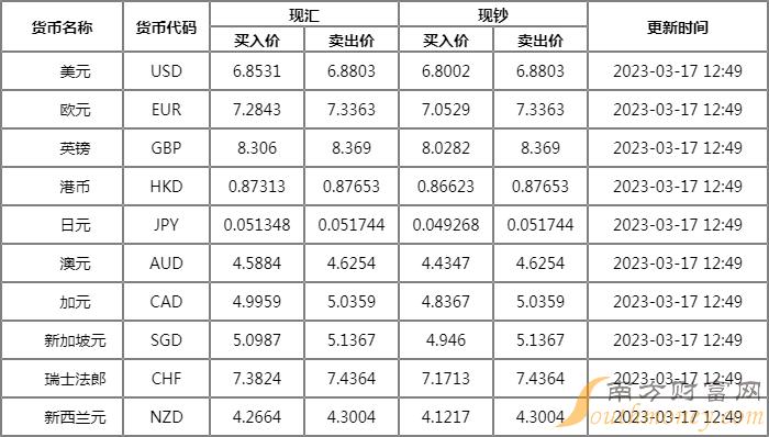 浙商银行外汇牌价表2023年3月17日,人民币对美元汇率多少?下面南方财富网老白整理如下: