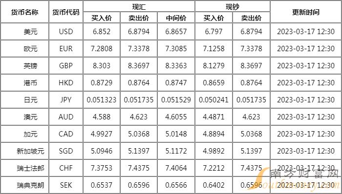 华夏银行外汇牌价表2023年3月17日,人民币对美元汇率多少?下面南方财富网默默整理如下: