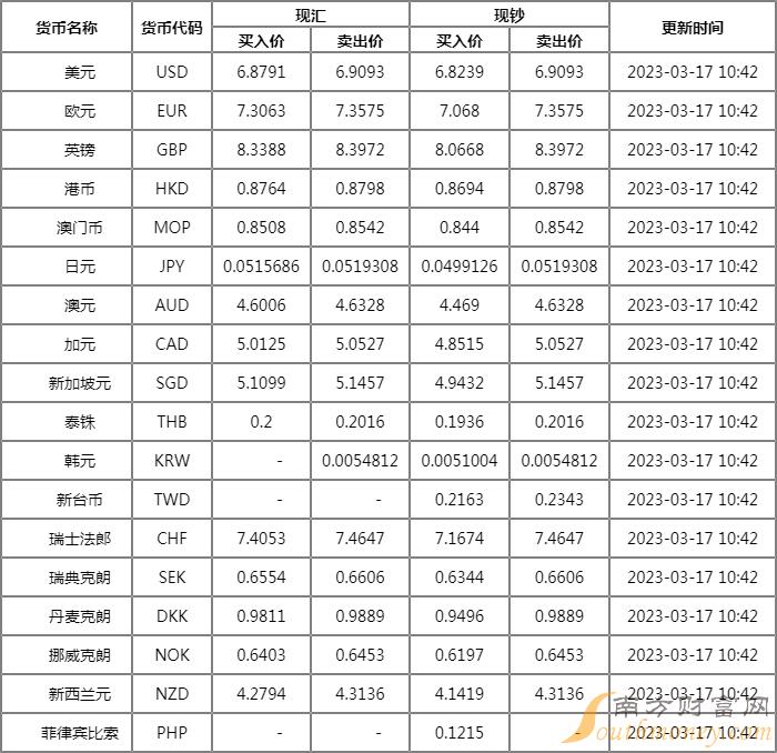 3月17日,人民币兑美元中间价上调97个基点,报6.9052。3月16日,人民币兑美元中间价报6.9149,调贬469个基点。