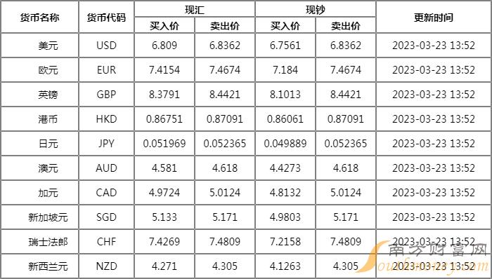 浙商银行外汇牌价一览 3月23日浙商银行人民币美元汇率多少?下面同南方财富网萧哥来看看。