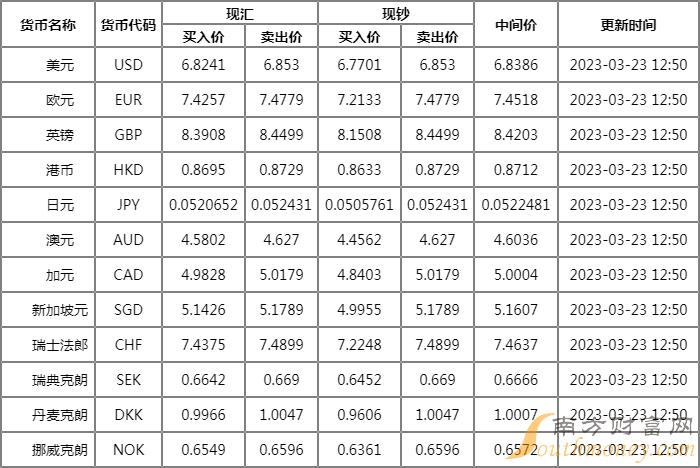 浦发银行外汇牌价一览 3月23日浦发银行人民币美元汇率多少?下面同南方财富网呆鸟君来看看。